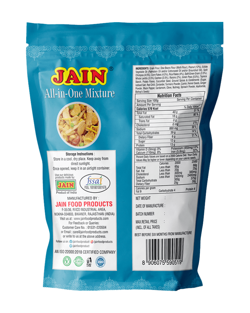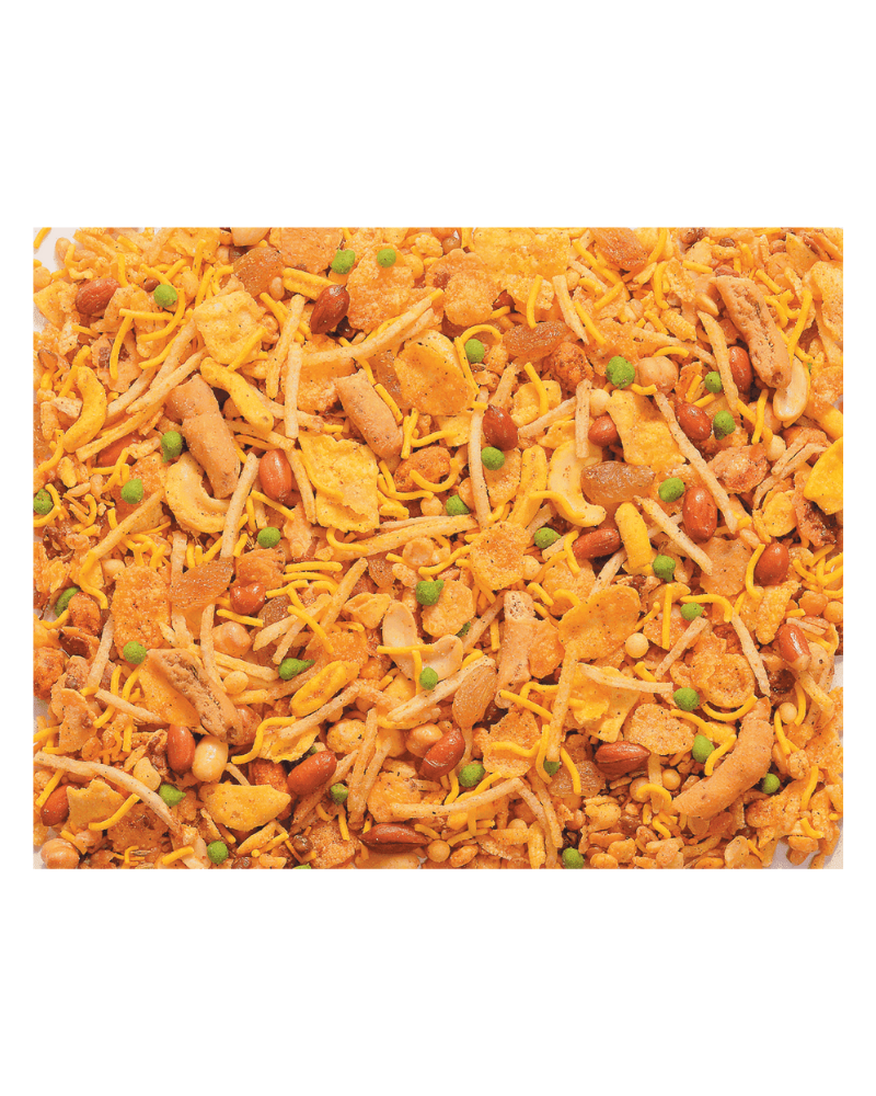 - RICH MULTI-INGREDIENT BLEND: Crafted with gram flour, moth flour, peanuts (12%), cashews, raisins, corn flakes, rice flakes, lentils, peas & spices for a complete snacking experience.